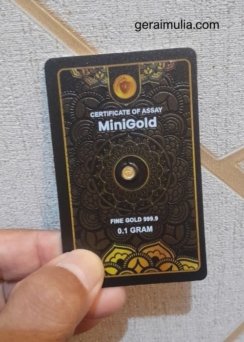 Mini Gold adalah logam mulia emas murni seperti Antam, dengan kemasan lebih kecil mulai 0,01 gram. Bersertifikat resmi yang telah diuji di Sucofindo dan G-Lab Pegadaian.